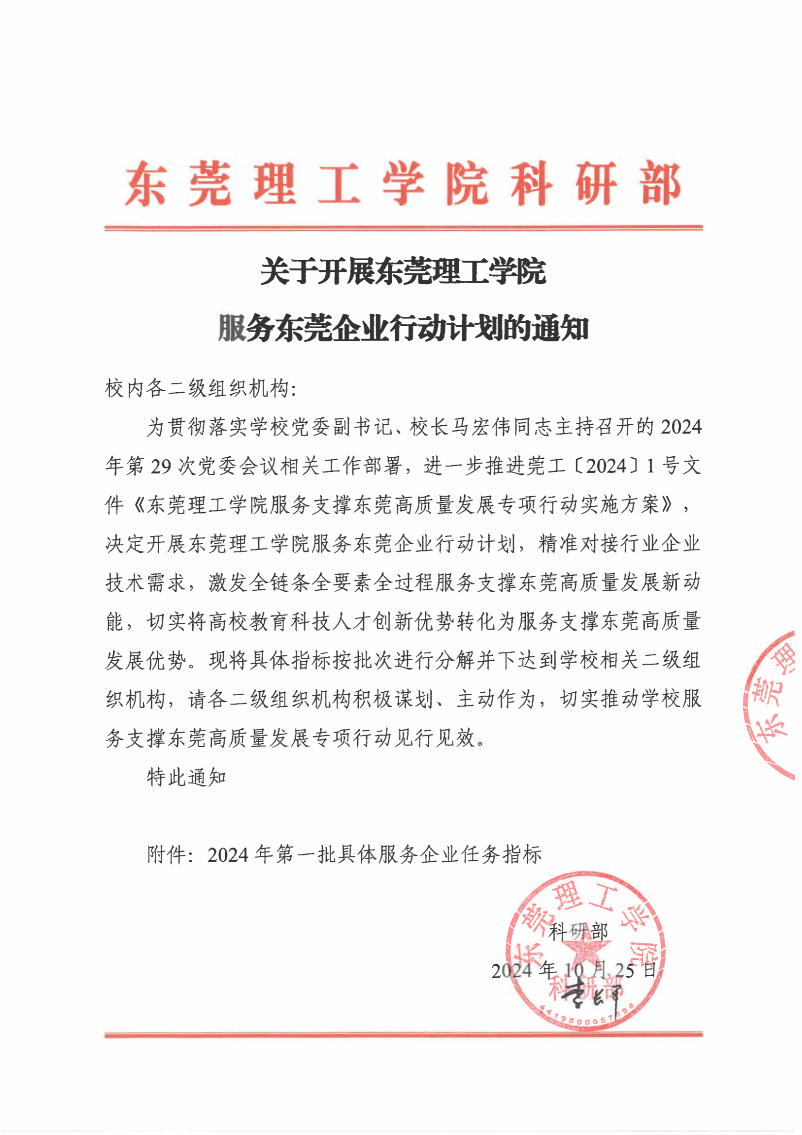 关于开展sunbet申搏服务东莞企业行动计划的通知 科研通〔2024〕122号