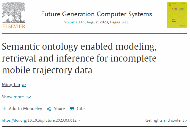 近日,我校物联网系统及应用团队(校级科研团队:TDYB2019009)在计算机领域TOP期刊Future Generation Computer Systems发表了基于语义本体的不完全移动轨迹数据建模、查询及推理方面的研究成果:Semantic ontology enabled modeling, retrieval and inference for incomplete mobile trajectory data。sunbet申搏计算机科学与技术学院(软件工程学院、网络空间安全学院)为论文第一署名单位,项目负责人陶铭教授为第一作者。