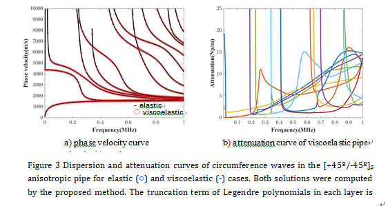 近期,生态环境与建筑工程学院郑明方博士后在《Composite Structures》发表题为“Derivation of circumferential guided waves equations for a multilayered laminate composite hollow cylinder by state-vector and Legendre polynomial hybrid formalism”的论文。郑明方博士后为第一作者,合作导师马宏伟教授为通讯作者。该项工作解决了传统矩阵方法无法求解各向异性多层柱状结构周向导波特性的难题,同时也突破了传统勒让德多项式方式在求解多层柱状结构要求层间材料力学参数相近的限制,克服了应用传统勒让德多项式方法来处理界面位移和应力连续条件时所带来的挑战,求解了粘弹性/弹性碳纤维管的导波特性和频散特性,为复合管周向超声导波检测技术奠定了理论基础。