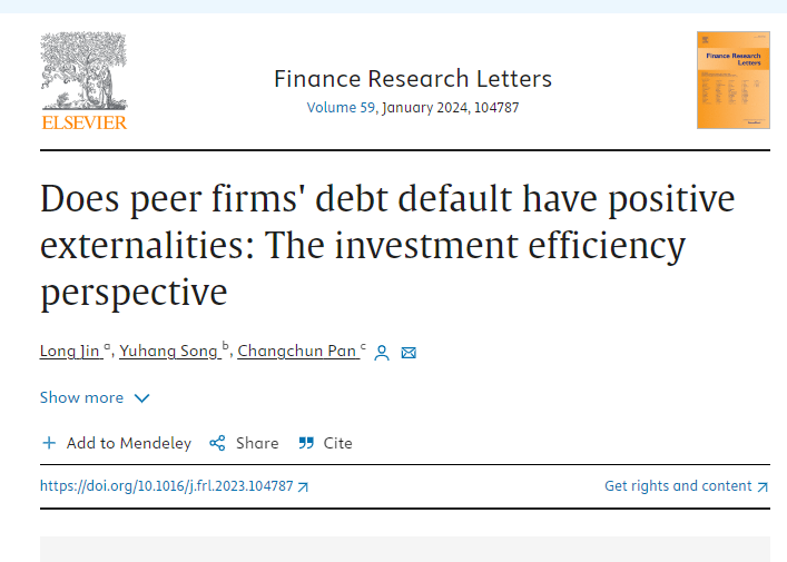 债务违约是市场经济发挥出清功能,实现资源有效配置的正常经济现象。但在经济运行过程中,由于债务违约的发生给投资者造成了巨大的经济损失,使得学术界和实务界都过度关注于债务违约的不利后果,将其视为破坏金融稳定的洪水猛兽,忽略了债务违约的良性影响。实际上,任何事物都具有两面性,债务违约等负面事件除了会带来负面冲击外,还能够给经济系统带来正外部效应。我校经济与管理学院金龙老师团队最近在《Finance Research Letters》发表题为“Does peer firms' debt default have positive externalities: The investment efficiency perspective(同行企业债务违约是否具有正外部性:基于投资效率的视角)”的论文,对上述问题进行了研究。