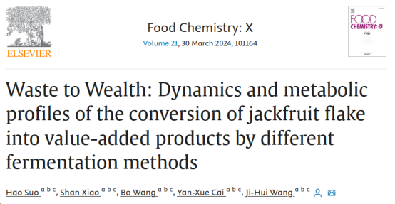 近日,生命健康技术学院生命健康技术学院王际辉教授团队在国际食品顶级期刊《Food Chemistry: X》在线发表题为“Waste to Wealth: Dynamics and metabolic profiles of the conversion of jackfruit flake into value-added products by different fermentation methods”的研究性文章。论文第一作者为索昊博士,通讯作者为王际辉教授。