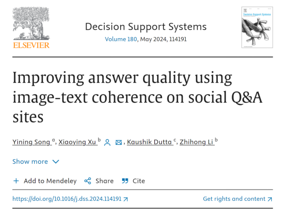 我校经济与管理学院宋忆宁老师团队最近在计算机科学1区TOP期刊《Decision Support Systems》上发表题为“Improving answer quality using image-text coherence on social Q&A sites”的论文,对上述问题进行了研究。