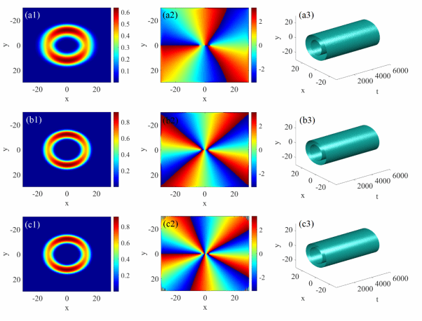 在以往的研究中,涡旋量子液滴一般通过非磁性原子实现,而在磁性原子系统中,当原子极化方向与涡旋轴方向一致时,涡旋液滴往往表现为不稳定状态。最近的研究表明,当磁性原子的极化方向与涡旋轴方向不同时,可以生成拓扑数为1的稳定偶极涡旋量子液滴。然而,当拓扑数超过1时,偶极涡旋液滴仍然难以保持稳定状态。因此,在磁性玻色系统中实现稳定的高拓扑数涡旋液滴仍是一项巨大的挑战。本研究通过在环形势中引入各向异性偶极相互作用,提出了一种创新性的理论框架,并通过数值模拟深入分析了偶极量子液滴的涡旋动力学行为。首次发现,在特定参数条件下,偶极量子液滴能够稳定地形成拓扑数高达11的高涡旋结构。这些偶极涡旋液滴不仅呈现出复杂的几何形态,还展现了独特的拓扑保护特性。这一成果显著拓宽了人们对量子液滴的认知,为探索复杂拓扑结构的量子体系开辟了全新的研究方向。